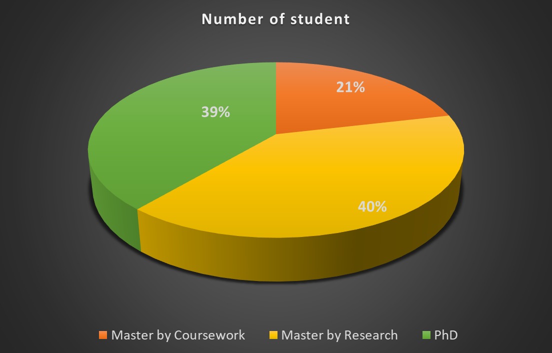 Number of Postgraduate Students by Research and Coursework at FSTM